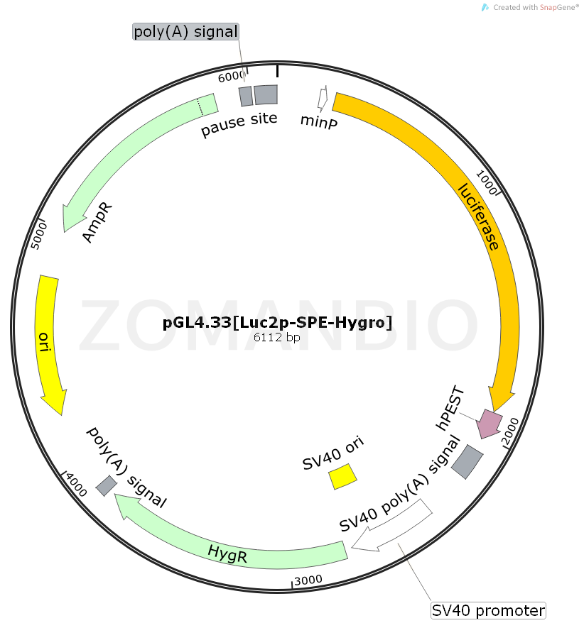 產(chǎn)品名稱:pGL4.33[Luc2p-SPE-Hygro]